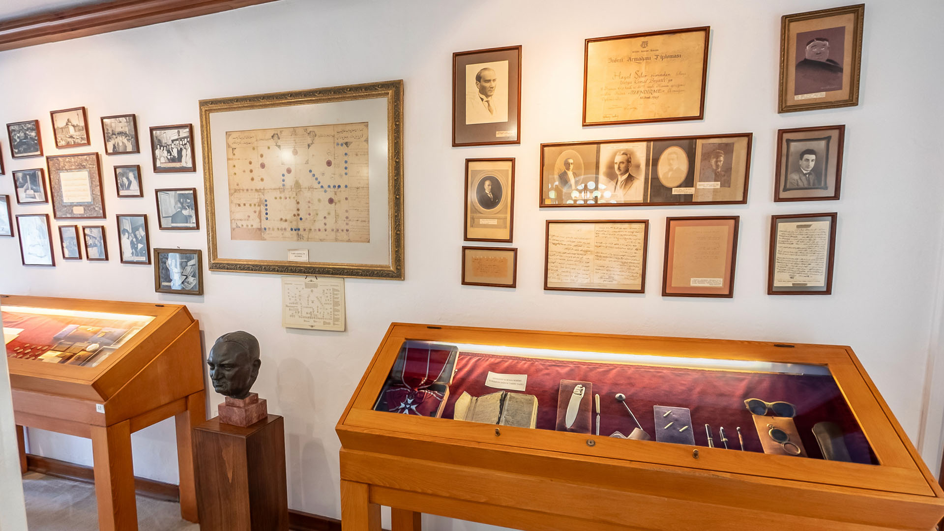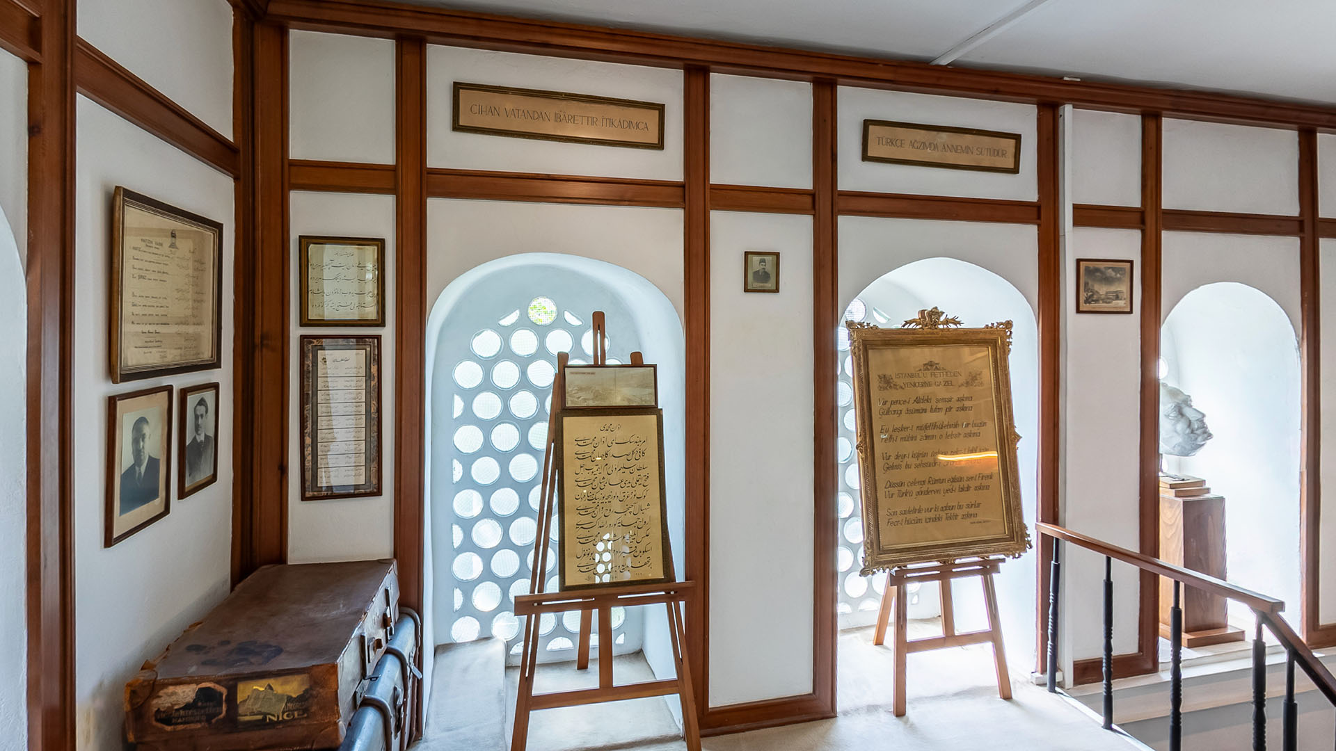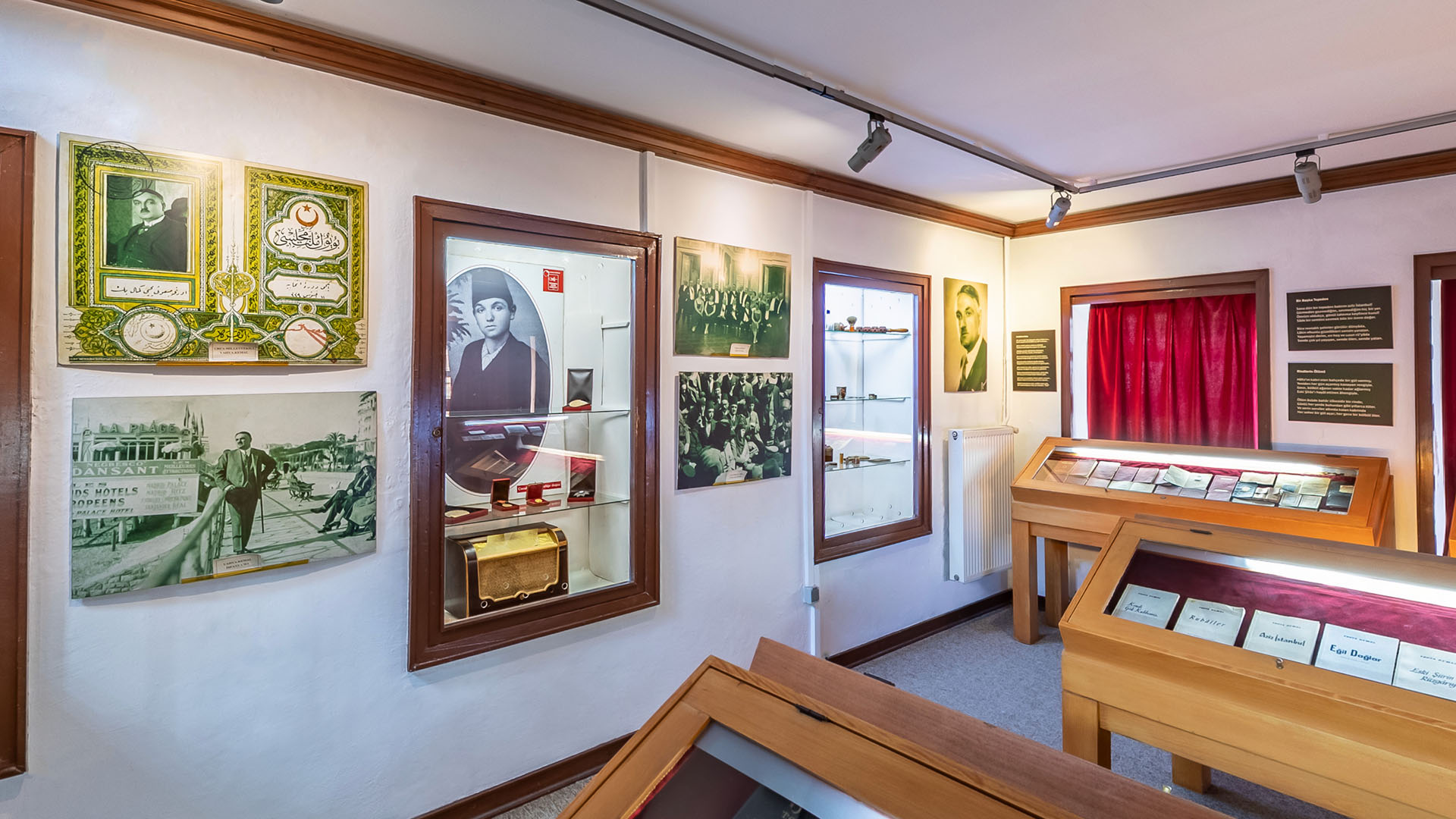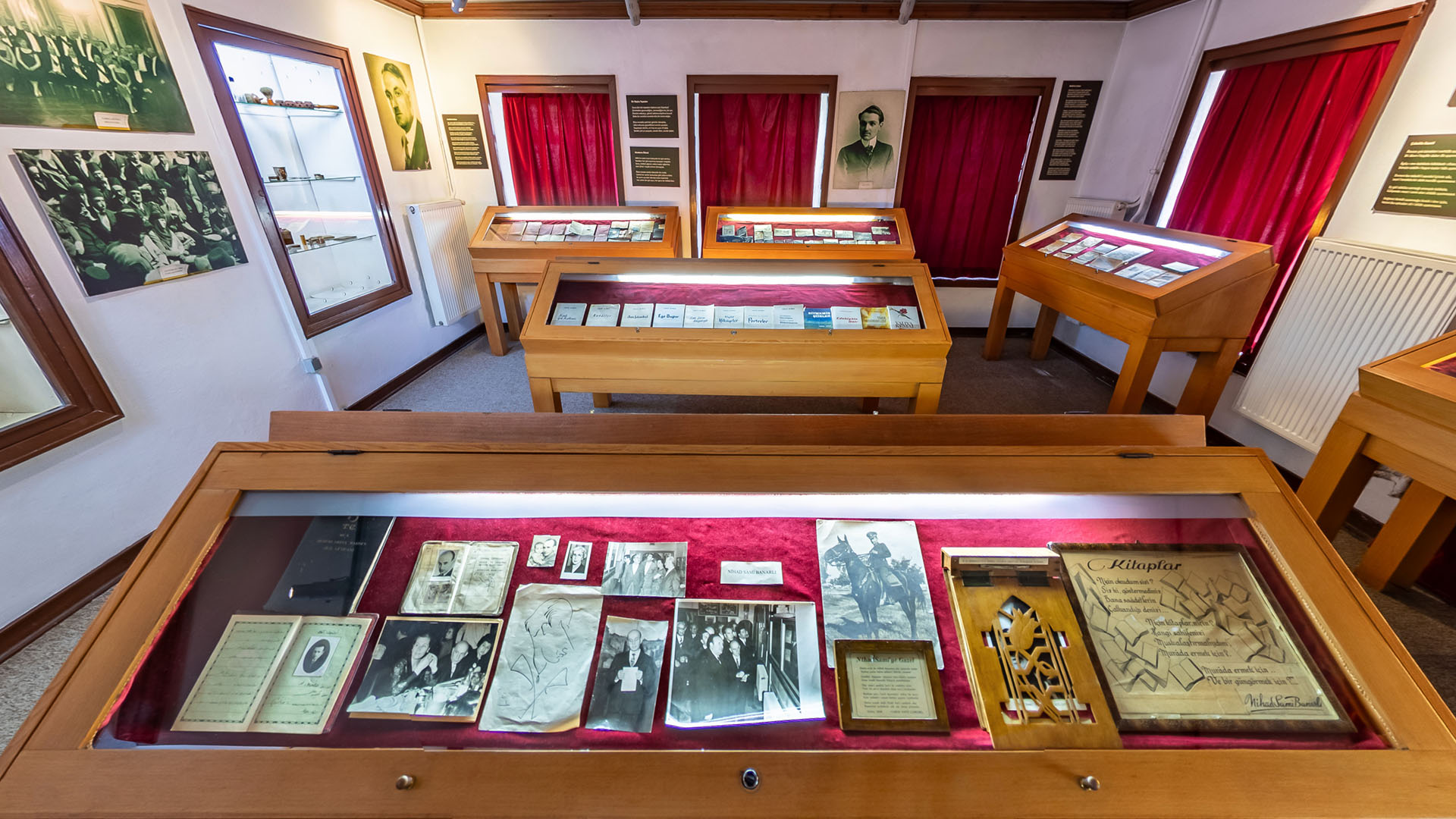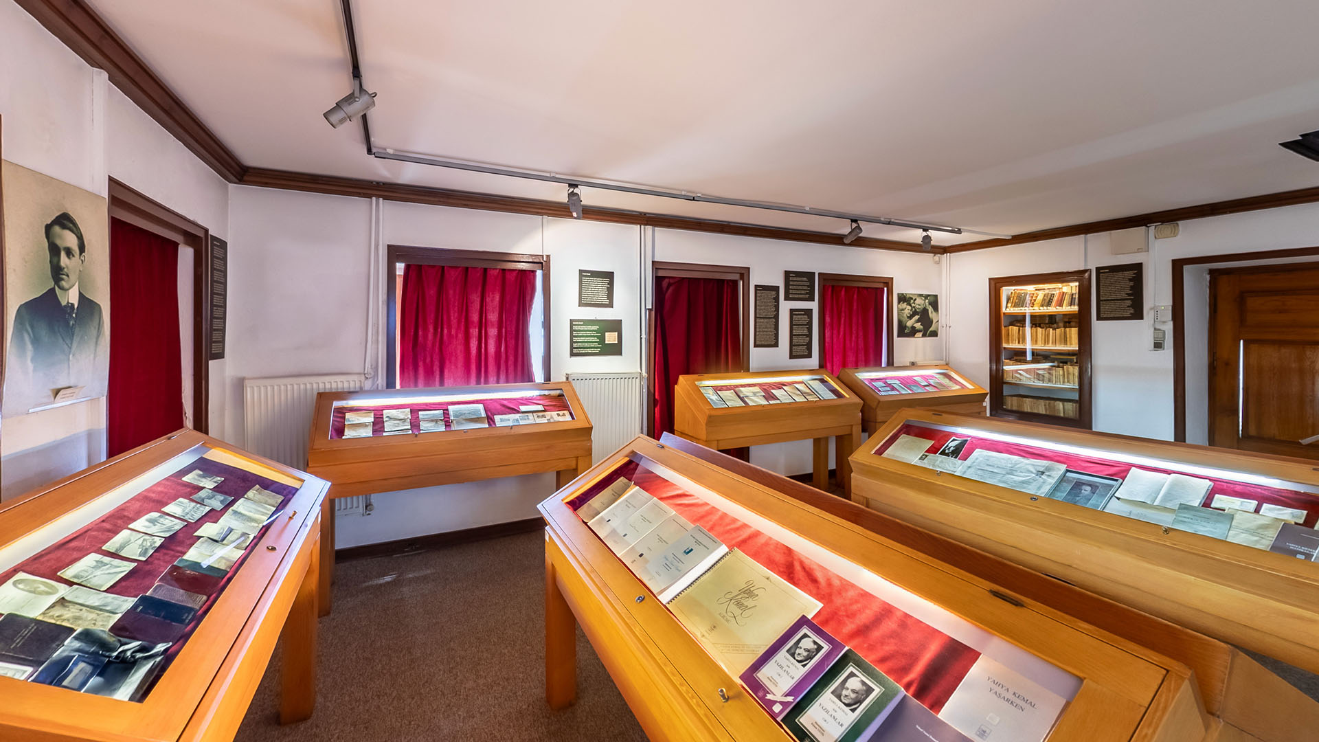 Yahya Kemal’in Park Otel’de kalırken kullandığı çalışma masası ve sandalyesi, seyahatlerde kullandığı Y.K amblemli valizi, annesinin, arkasına Yahya Kemal’in doğum tarihini not düştüğü Kur’an-ı Kerim, sevdiği kadından yadigar kalmış bir tutam saç teli, siyah beyaz fotoğraflar, smokini, şapkaları ve daha pek çok kişisel eşyası müzede sizleri bekliyor.